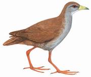描述:中等体型(28厘米),色暗而腿红。上体全橄榄褐色,脸及胸青灰色,腹部及尾下褐色。幼鸟灰色较少。体羽无横斑。飞行无力,腿下悬。