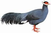 描述:体大(95厘米)的蓝灰色马鸡。具黑色天鹅绒式头盖,猩红色眼周裸皮及白色髭须延长成耳羽簇。枕后有一近白色横斑。尾羽弯曲,丝状中心尾羽灰色,与紫蓝色外侧尾羽成对比。此种在马鸡分布中为最西北。