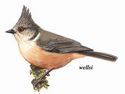 描述:体小(12厘米)而色淡的山雀。冠羽显著,体羽无黑色或黄色但具皮黄色与白色的半颈环。上体暗灰;下体随亚种不同从皮黄色至黄褐色有变化。亚种dichrous 具偏白的下髭纹,灰褐色的喉与黄褐色胸及深灰色上体成对比;wellsi的下体皮黄色较浅,喉及胸不成对比;dichroides似wellsi,头顶及冠羽灰色比上体其余部位浅。