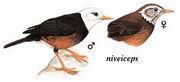 描述:体型略小(21厘米)的鸫。特征为腹部赤褐色,头及喉白色。雌鸟头顶及上体深橄榄褐色,眉纹白,喉近白,颈背具褐色杂斑,中覆羽具浅色横纹。
