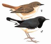 描述:雄鸟:体小的深色歌鸲(14厘米),腹部黄白,尾基部有白色闪斑;头顶、背、两翼及腰青石蓝色;脸、胸、尾上覆羽、尾中心及尾端均黑。雌鸟深橄榄褐,下体浅皮黄,与雌性蓝歌鸲的区别在下体无鳞状斑纹,尾下覆羽皮黄,尾沾赤褐。