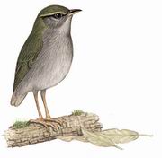 描述:体小(9.5厘米)而立姿甚直的灰色莺。甚似金冠地莺但下体灰色较淡;顶冠无黄色,且黑色的眼纹上方具明显的浅色眉纹。