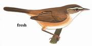 描述:中等体型(14厘米)的单调灰褐色苇莺。具深色的过眼纹,宽白的和大而长的嘴。新冬羽甚多棕色,胸、两胁及尾下覆羽沾棕。甚似稻田苇莺但嘴较长,眉纹上具醒目的黑色条纹。似钝翅[稻田]苇莺但嘴长尾也长,而第二道黑眉纹与顶纹的对比不强烈。