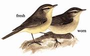 描述:中等体型(11厘米)的冷褐色柳莺。下体硫磺色,上胸、胸侧及两胁沾灰褐。尾无白色,无翼斑,无顶纹。颏偏白,眉纹长且色淡,过眼纹近黑。与棕腹柳莺的区别在色较冷而少橄榄色,眉线前端橘黄而后端成黄色。比烟柳莺色彩淡而亮丽。与棕眉柳莺的区别在色彩较冷且喉无黄色细纹。