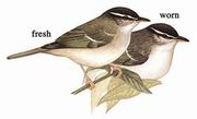 描述:体型略大(12.5厘米)的柳莺。上体绿橄榄色,尾无白色,具一道或通常为两道偏黄色翼斑;眼纹色深,耳羽具杂斑。下体白,两胁近灰且常有淡黄渲染。眉纹长,前黄而后白。嘴大而色深,嘴端略具钩。与极北柳莺的区别在嘴色深,上体绿色较重,翼斑绿色。与暗绿柳莺的区别在体型较大,嘴较大,眉纹较长,脸颊及下体多黄色;最好以声音区分。与灰脚柳莺的区别在腿色较深,嘴较大,眉线、脸颊及下体多黄色。