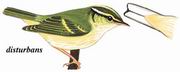 描述:中等体型(10.5厘米)的柳莺。上体亮绿色,具两道近黄色的翼斑;下体白而染黄;顶纹模糊,粗眉纹黄色,过眼纹近深绿色;外侧三枚尾羽具白色内缘,且延至外翈。甚似冠纹柳莺及峨眉柳莺,最好以声音及行为来区别,但外侧尾羽的白色较多。峨眉柳莺的顶纹不清晰且少黄色。冠纹柳莺上体绿色较少,下体更白。亚种disturbans的下体黄色较少,尾羽白色也少;ogilveigranti 的色较深,下体污白而具黄色纵纹。