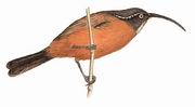 描述:体型略小(20厘米)的树皮褐色钩嘴鹛。特征为近黑色的嘴极细长而下弯。头青石灰色,狭窄的眉纹白色。上体深红褐;下体锈色略沾皮黄,喉偏白。