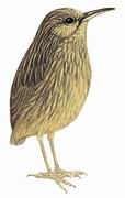 描述:体小(13厘米)尾短、体羽蓬松的褐色而具皮黄色纵纹的鹩鹛。嘴长而下弯,与纹胸鹪鹛的区别在嘴长且无显著眉纹。下体深褐,喉皮黄白色,胸具淡皮黄色纵纹。