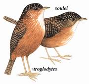描述:体小(13厘米)而尾稍长的鹩鹛。上体红褐而具黑白色点斑,尾及两翼具黑色细横斑。下体棕色,喉白色明显,胸通常具浅淡的白色纵纹。亚种souliei 脸颊褐色较重而少棕色;rocki的体型较大,脸颊深橙色,背多灰且两翼的横斑较少。
