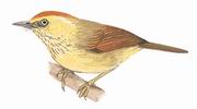 描述:体小(13厘米)的棕色鹛。下体浅绿黄多纵纹,头顶、两翼及尾深棕色,喉及胸部有明显的深色纵纹。