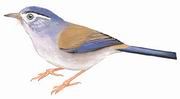 描述:体小(15厘米)而不会被误认的尾长的林栖型鹛。两翼、尾及头顶蓝色。上背、两胁及腰黄褐,喉及腹部偏白,脸颊偏灰。眉纹及眼圈白。尾甚细长而呈方形,从下看为白色具黑色羽缘。