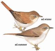 描述:体型略小(11厘米)的纯棕褐色林莺。三级飞羽、腰及尾上覆羽棕色,下体白色。似白喉林莺及沙白喉林莺但色彩较淡且多棕色。