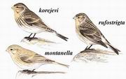 描述:体小(13厘米)的褐色具纵纹的雀鸟。腰粉红或近白。与其他朱顶雀的区别在头顶无红色点斑,体羽色深而多褐色,尾较长,叫声也不同。与赤胸朱顶雀的区别在嘴黄且小,头褐色较浓,颈背及上背多纵纹,翼上及尾基部的白色较少。诸亚种小有差异。亚种korejevi色彩甚淡;montanella色彩更淡,下体近白,腰浅粉红或皮黄;rufostrigata褐色较重而多纵纹,腰深粉红,两翼及尾近黑,翼具偏白色的宽纹,尾缘近白;miniakensis上体的深色纵纹带皮黄色边缘,腰白或浅粉红。