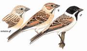 描述:体型略小(15厘米)而头黑的鹀。具显著的白色下髭纹。繁殖期雄鸟似苇鹀但上体多棕色。雌鸟及非繁殖期雄鸟头部的黑色多褪去,头顶及耳羽具杂斑,眉线皮黄。与苇鹀的区别还在于小覆羽棕色而非灰色,且上嘴圆凸形。诸多亚种有细微的差异。在中国繁殖的亚种中,minor体型最小,pyrrhuloides及zaidamensis体大且嘴呈球状。后者较pyrrhuloides多皮黄色而少灰色。
