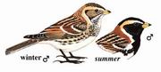 叫声:通常的飞行叫声为生硬的嘟声prrt接短促而清晰哨音teuw,似雪鹀但不如其悦耳。