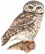 描述:体小(20厘米)的褐色鸮鸟。无耳羽簇,眼黄色。上体灰褐,头顶具白色小点斑,两翼及背部的白色点斑大些。淡皮黄色的颈圈不完整。眉及喉偏白。下体偏白,胸及两侧具灰色横斑。下体无纵纹。比Asian Barred Owlet 的尾稍短而头显平。