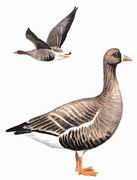 描述:中等体型(62厘米)的灰色雁。腿橘黄,环嘴基有白斑,腹部具近黑色斑块。极似白额雁,冬季常与其混群。不同处在于体型较小,嘴、颈较短,嘴周围白色斑块延伸至额部,眼圈黄色,腹部暗色块较?7尚惺绷揭硐猿で艺癯峤峡臁?br>虹膜-深褐;嘴-粉红;脚-橘黄。