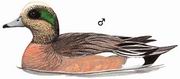 描述:中等体型(52厘米),非常似赤颈鸭但体型略大。繁殖期雄鸟宽阔的绿色眼线横贯苍白色的头部而极易分辨,冬季雄雌两性都难区别于赤颈鸭。葡萄胸鸭嘴、颈及尾均形长。颈部灰色及两胁赤褐色对比较明显;有些年轻雄鸟嘴基周围有黑色带;腋羽及下翼中央纯白色非淡灰白色;大覆羽较白,在翅上形成浅色块。