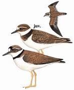 描述:体型略大(22厘米)而健壮的黑、褐及白色鸻。略长的嘴全黑,尾较剑鸻及金眶鸻长,白色的翼上横纹不及剑鸻粗而明显。繁殖期体羽特征为具黑色的前顶横纹和全胸带,但贯眼纹灰褐而非黑。亚成鸟同剑鸻及金眶鸻。