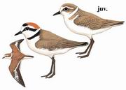 描述:体小(15厘米)而嘴短的褐色及白色鸻。与金眶鸻的区别在腿黑色,飞行时具白色翼上横纹,尾羽外侧更白。雄鸟胸侧具黑色块斑;雌鸟此斑块为褐色。亚种dealbatus嘴较长较厚。