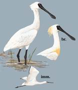 描述:体略大(76厘米)的白色琵鹭。长长的嘴灰黑色而形似琵琶。似冬季的白琵鹭但嘴全灰,脸部裸露皮肤黑色且少扩展。