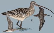 描述:体型硕大(63厘米)的杓鹬。嘴甚长而下弯;比白腰杓鹬色深而褐色重,下背及尾褐色,下体皮黄。飞行时展现的翼下横纹不同于白腰杓鹬的白色。