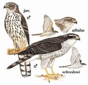 习性:林地这的鹰类,两翼宽圆,能作快速翻转扭绕。主要食物为鸽类,但也捕食可猎捕的其他鸟类及哺乳动物如野兔。