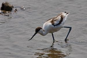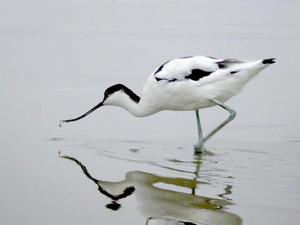 反嘴鹬体高43厘米左右的黑白色鹬。形长的腿灰色,黑色的嘴细长而上翘。飞行时从下面看体羽全白,仅翼尖黑色。具黑色的翼上横纹及肩部条纹。