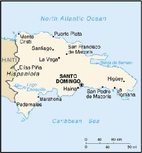 多米尼加拉丁美洲岛国。位于西印度群岛中伊斯帕尼奥拉岛(海地岛)东半部,西接海地,北濒大西洋,南滨加勒比海,东隔莫纳海峡与波多黎各相望。海岸线全长1350公里。面积48442平方公里,占伊斯帕尼奥拉岛面积64%。人口641.6万(1985)。全国分为26个省,首都圣多明各。