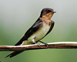 家燕小型鸟类,体长15-19cm。上体蓝黑色而富有光泽。颏、喉和上胸栗色,下胸和腹白色。尾长、呈深叉状。相似种金腰燕腰为棕栗色,下体有黑色纵纹,上胸和喉无栗色。