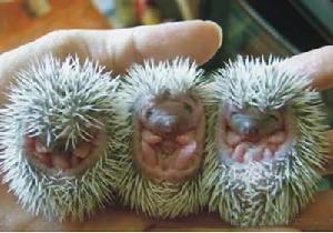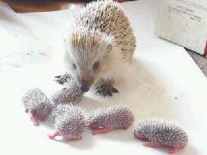 (2)夏季:小刺猬出生。它们全身有100多根刺,出生后前两周无视力。小东西由母乳喂养4-8周。而后,母刺猬教授如何觅食。两个月后,母刺猬停止照顾幼刺猬,让它们独立生活。成熟的刺猬平均每餐进食40克食物。大约90%的小刺猬寿命不到一年。如果您想对养育幼子中的刺猬妈妈提供帮助,可以在它们出没的地方撒些猫粮、狗粮,千万不要拿牛奶、咸面包和有调料的食品给它们。