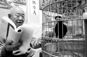 红桥区世春里小区的张辅老先生养了一只“能说会道”的聪明鹩哥,这只鹩哥不仅能够招呼客人、与人对话,甚至还能和人对诵古诗。