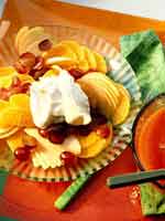 许多人每天都是在食堂吃午餐。当然,只要你会选择,平衡的饮食还是非常有可能的。头盘要避免吃热的(馅饼、比萨)和熏肉食品,它们都含有大量的脂肪,却不易被人觉察。最好选择一份生的蔬菜。主菜可以选择一份鱼或者肉,配一些蔬菜(少许含淀粉的食品和大量绿色蔬菜)。最后来一份乳制甜点(酸奶,奶油甜点,泡沫蛋白),一小份果泥或者一份水果沙拉。如果您所在的咖啡馆提供减肥食谱(现在越来越普遍),那就好好利用吧!您不太饿?那就来一份火腿,一份生的蔬菜和一块面包,当然别忘了带一份酸奶(从冰箱拿出来后可保质2小时)和一个水果,可以在下午吃。