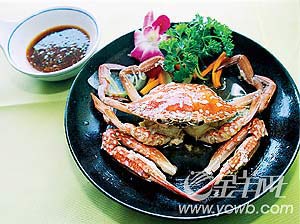 秋日螃蟹方为尤物。因为蟹肥了,但常见的烹调唯独沽清蒸一味。《红楼梦》第三十八回中道:山坡下两棵桂花开得正好,主角是螃蟹,配角是姜醋茶,剩下的就是斗嘴了。想来那螃蟹也是清蒸的吧。