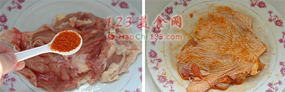 3、为了更好的入味,鸡肉较厚的地方还可以用牙签扎些小孔。