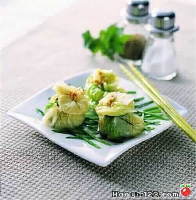 5、最后将蒸出来的汁水加鸡精、盐调和后,浇在白菜包上即可。