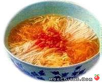 5、最后,将清水加白糖,烧开,去沫,晾凉后,倒入碗内。