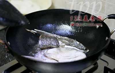 5、倒入半锅水,将咖哩分成小块下入,再加入少量的盐,两勺料酒,一大勺醋,大火烧开后,改小火闷煮10分钟。