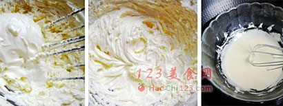 8、把打好的淡奶油与打好的蛋黄都加入到马斯卡彭芝士中。