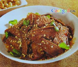 用料材料:熟牛肚250克,熟牛舌250克,香菜5克,熟花生米50克调味料:酱油10cc,红油20cc,花椒粉5克,黄酒15cc,味精1克,盐3克