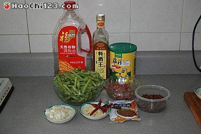 干辣椒、花椒、葱蒜、盐、料酒、鸡精、豆瓣、香油。