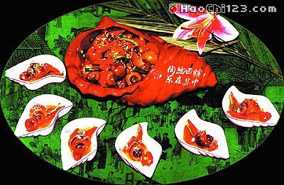 2、烹调时入沸水锅中连壳焯20秒捞出,再放清水中浸泡30分钟、冲洗干净待用;