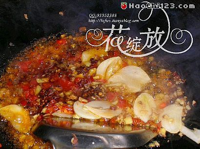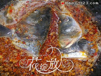 2、加约一斤汤或水,下鱼头、盐、白糖、黄酒。