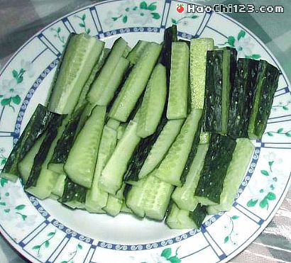 1、黄瓜洗净,切成条,稍去心,干辣椒切成短段。