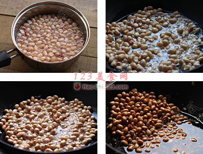 2、煮过的花生米要冷油下锅,否则要四处溅油。