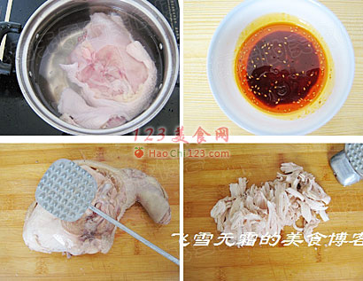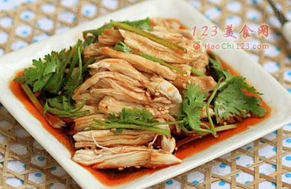 3、棒棒鸡也是夏天比较容易做的菜之一了。这和蒸鱼之类的很相似。只要鸡熟了,再做个汁完全可以搞定。相当简单。