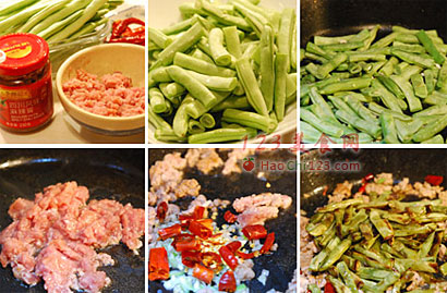 豆角300克、猪肉馅50克、干辣椒数个、花椒20粒、葱适量。2、豆角切成约5-6cm的段,放入微波炉中高火4分钟,取出后若不够干瘪,可以再拌一下继续高火2分钟。