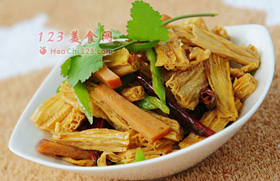 3、在东北腐竹经常被用作凉菜的食材,殊不知腐竹热炒也别有一番滋味,无论配合米饭还是下酒都是绝好的美味。