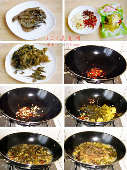鲜虾10个、酸菜(用来做酸菜鱼的酸菜)100克、野山椒、姜片、蒜泥、料酒、盐、鸡精、糖、胡椒粉、清汤。2、将酸菜中的水分用手攥干,切成细丝待用;野山椒剁碎。
