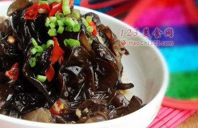 木耳、红油、蒜泥、盐、葱、小米辣。二、川式红油